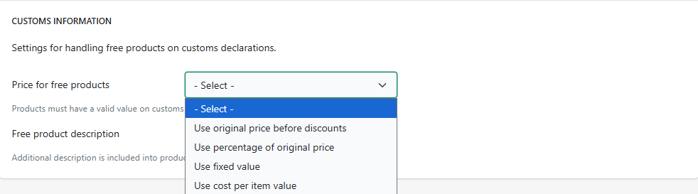 Sometime you might find yourself in a situation where you are shipping to a destination country requiring customs declaration and you have products in the shipment without a value. These can be, for example, products sent as a gift or products that's value has been discounted to zero, for one reason or another.