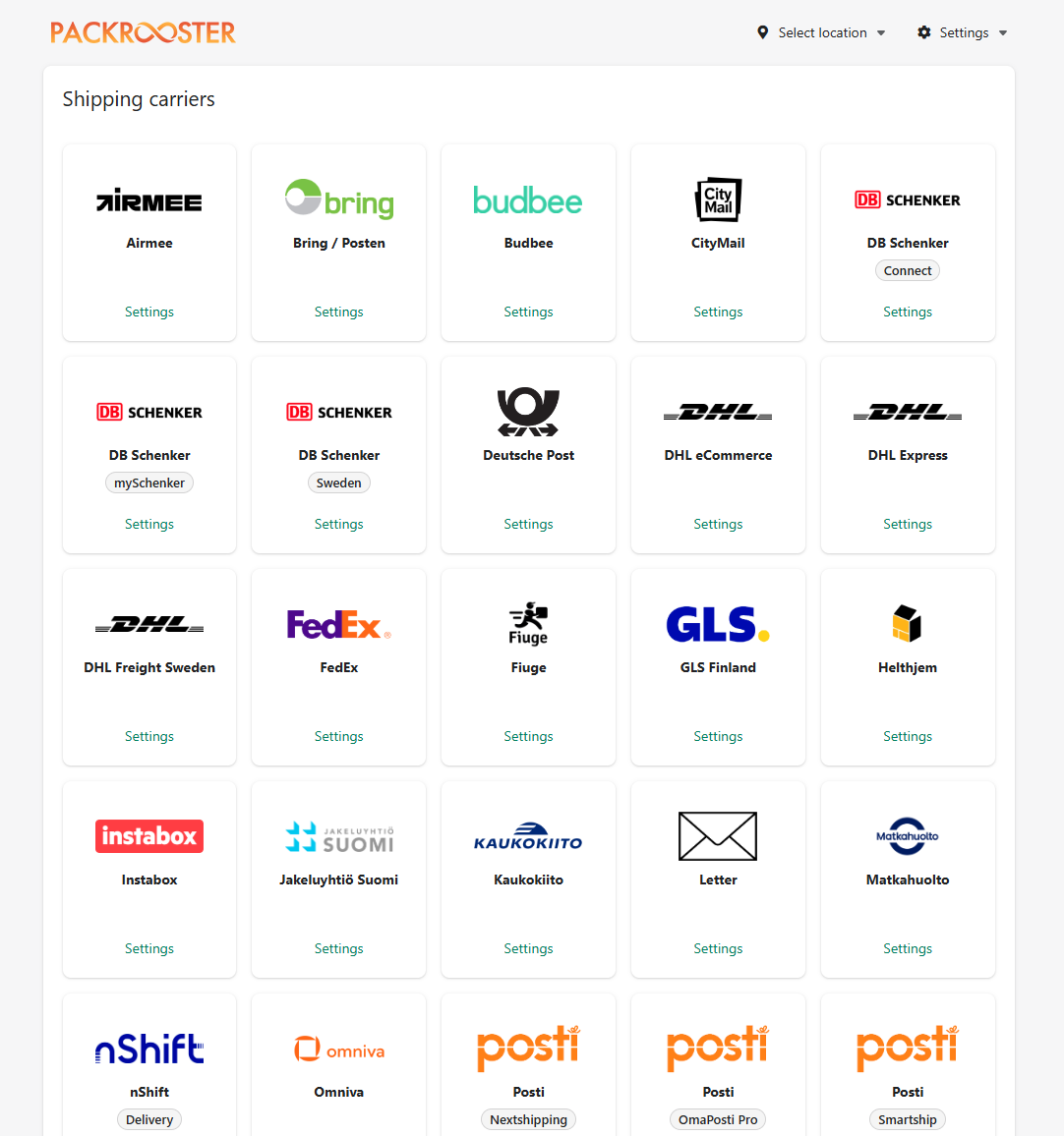 Settings —> Shipping carriers —> Click on the carrier you want to connect